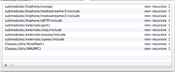 首先,从文件夹(和子文件夹)添加liblinphone-sdk/apple-darwin/lib中的所有库。然后确保添加以下列表: