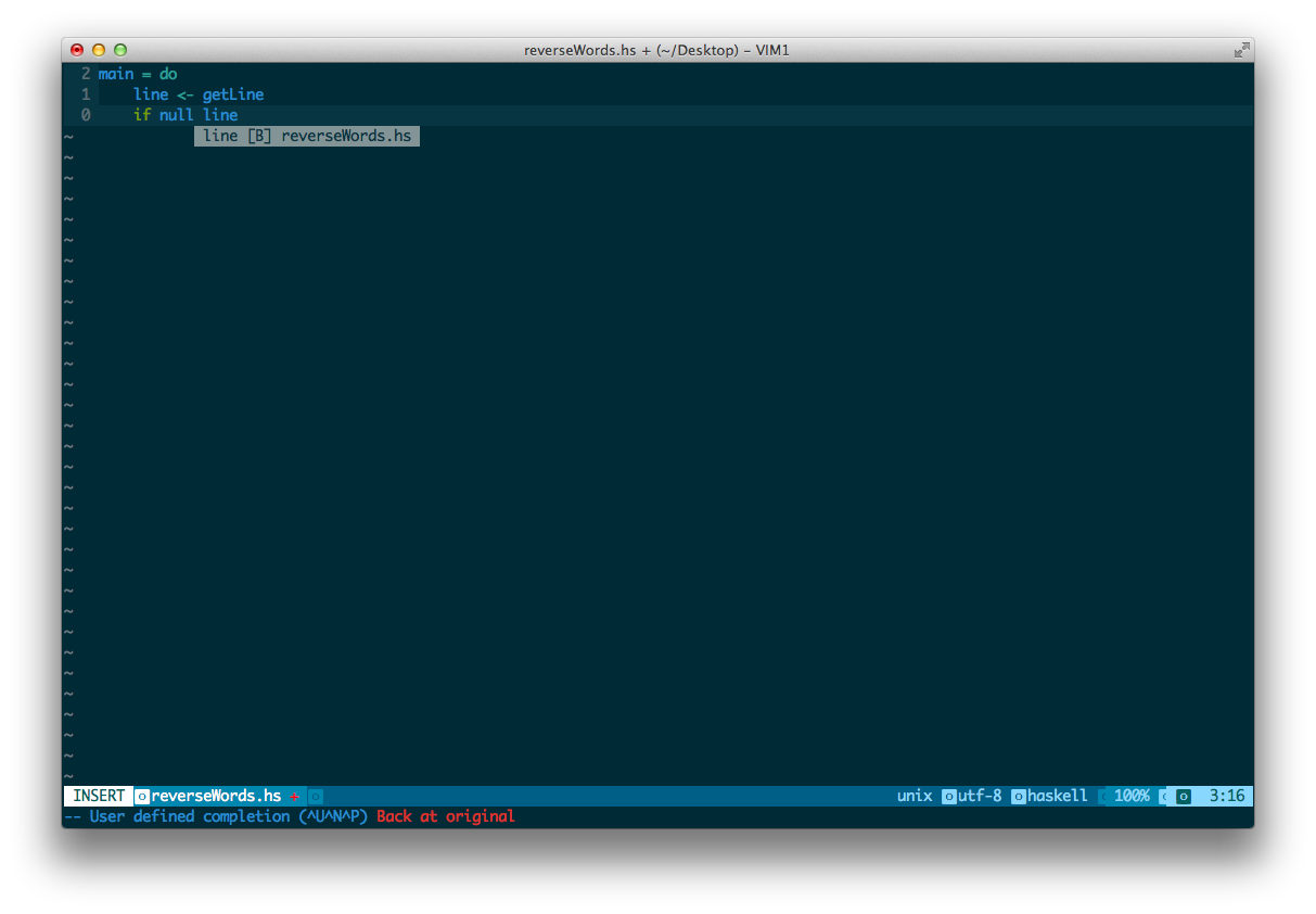 问题是,当我在行的末尾时,NeoComplCache会提示出一些单词。我想按下返回键在下面打开一个新的行,但是我需要按返回键2次。
