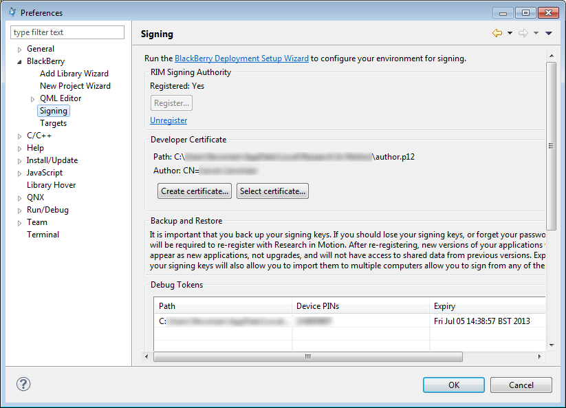您可以在IDE中更改作者。转到\ BlackBerry \ Signing签名,然后单击。这应该可以让你上传你的应用程序使用相同的键到BlackBerry世界。