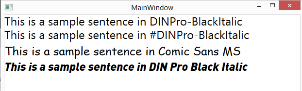 <TextBlock Text="This is a sample sentence in DINPro-BlackItalic"