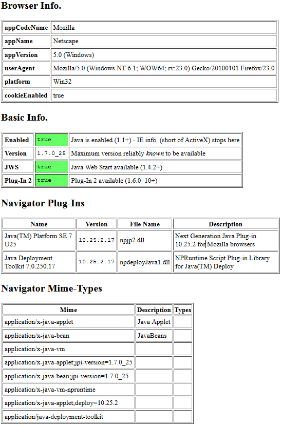 Java(TM) Platform SE 7 U25 undefined npjp2.dll Next Generation Java Plug-in 10.25.2 for Mozilla browsers