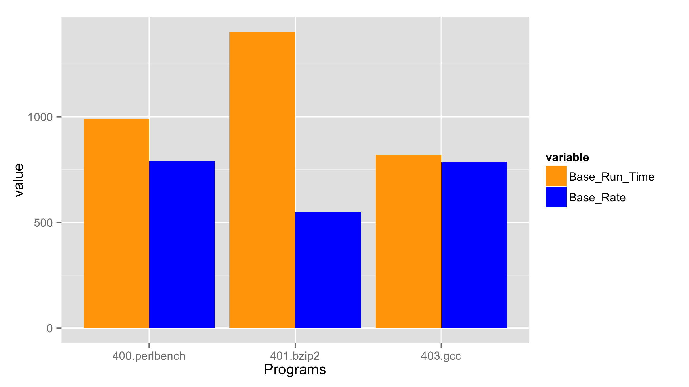xx <- melt(x, id = "Programs",measure.vars = c("Base_Run_Time", "Bench_Mark_Run_Time"))