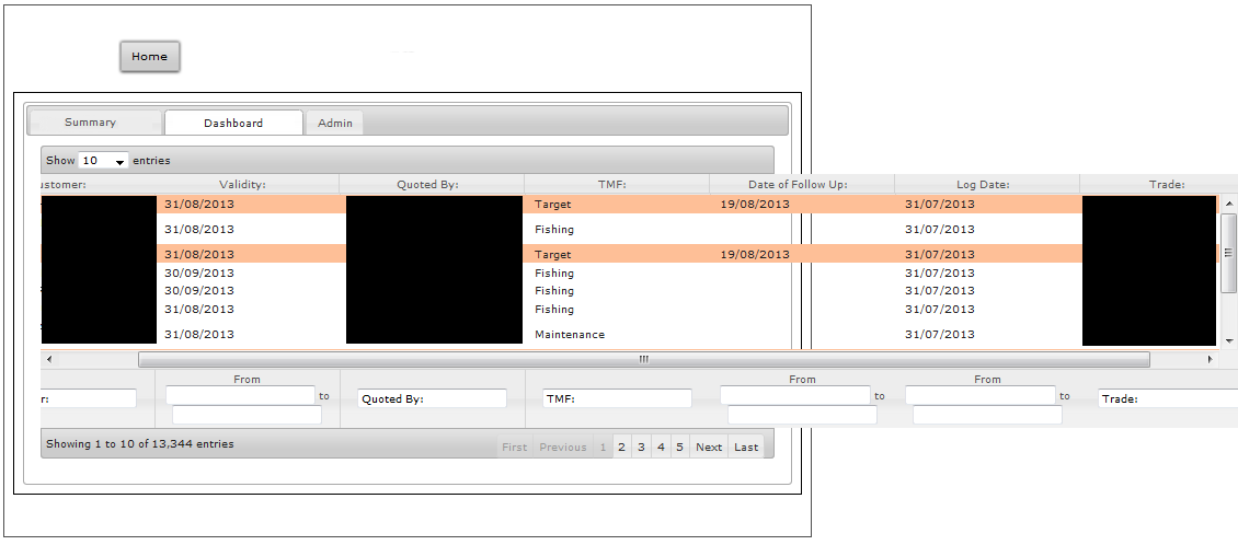 应用程序现在需要进行列过滤,以启用我使用过jQuery DataTables列过滤器插件的数据挖掘。由于某些原因,错误再次出现,我不确定如何修复它(我假设页脚列宽度的计算不会与核心表计算同时进行)。