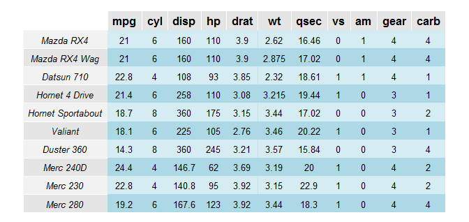 grid.table(mtcars[1:10, ],