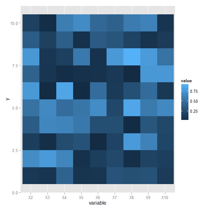 p <- ggplot( out.melt , aes( variable , y , fill = value ) ) + geom_raster()