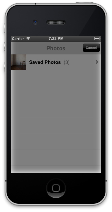 cameraUI.sourceType = UIImagePickerControllerSourceTypePhotoLibrary;