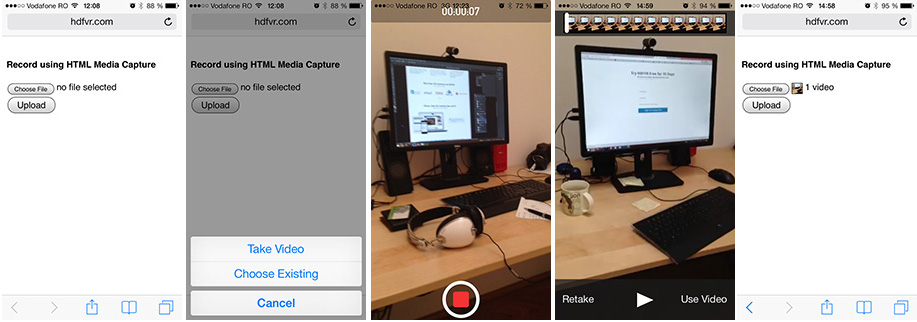 这一过程在Android设备上类似于音频。任何桌面浏览器都不支持HTML媒体捕获。