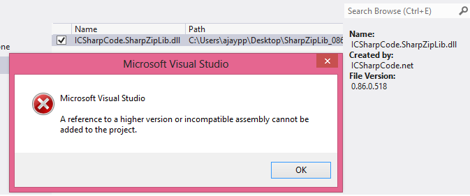 我正在尝试将SharpZipLib的dll添加到我的Windows Phone 8项目中。它给出了以下错误,同时添加
