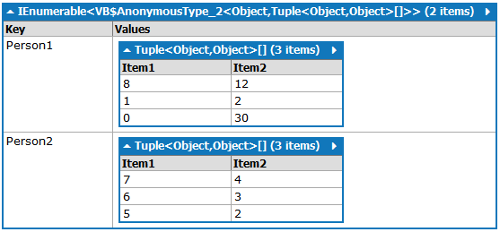 12| 2 | 30我可以通过sql查询来实现这一点,而在R中,我可以使用ListObject,但是我在vb.net中是新手,所以我想知道最好的方法是在vb.net中获取和存储这些信息(每人)。