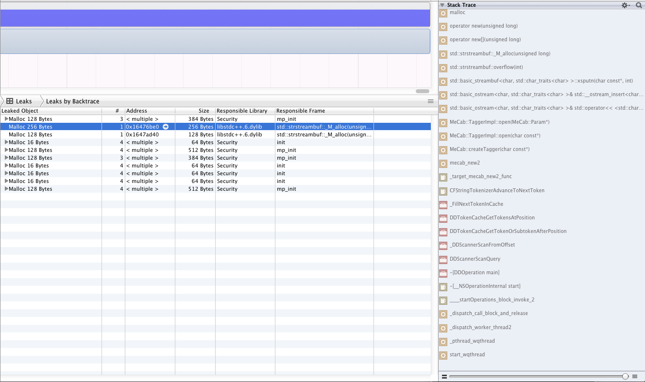 DDOperation是一个NSOperation子类,它是iOS和OS中数据检测框架的一部分。我也无法将您的泄漏定位到特定的行,但似乎您正在泄漏使用NSDataDetector时间接创建的内容。检查在使用基于块的枚举器时是否保留了任何内容,但从不释放它。