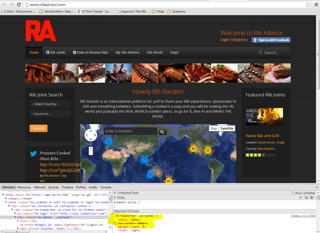在页面的右上角有一个标题“欢迎来到”。下面是一个Facebook登录,但在IE,Chrome,Safari不会与“登录”和“注册”相一致。请看这里,http://www.ribadvisor.com