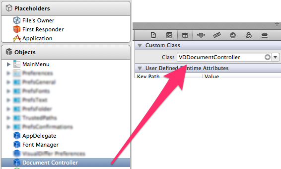 我正在尝试覆盖newDocument:在我的基于可可文档的应用程序中。我有一个标准项目,当在菜单栏中单击New时,第一个Responder将接收该操作。我的目标是在菜单栏中单击new时,出现一个带有新文档配置的窗口(有点像Photoshop)。在阅读了Apple之后,我发现我需要在一个newDocument子类中重写NSDocumentController:。然后,我设置在调用newDocument:时应该出现一个配置窗口。