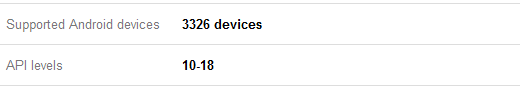 例如,我的应用程序上传到Play Store有10-18 API支持,因此它同样支持play存储上的3326种设备,并且仅适用于那些api级别的设备