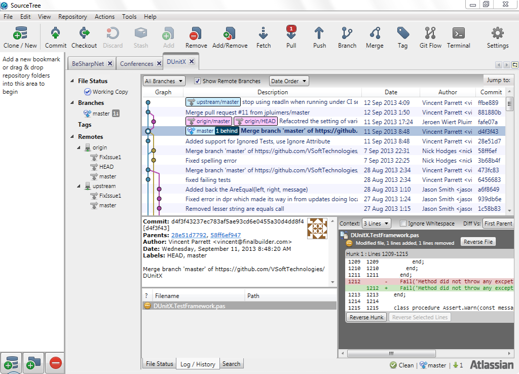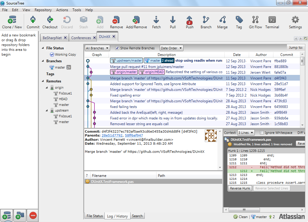 TortoiseHG有工作台,它基本上是我将本地存储库与远程存储库同步的核心工具:上游和原点。