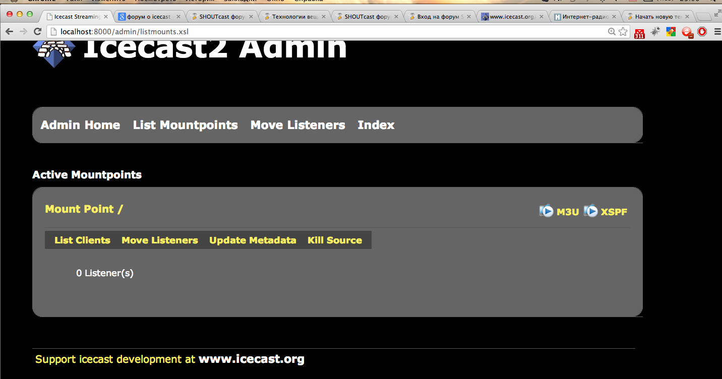 </icecast>结果是icecast管理中的一个空挂载点:
