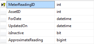 这是我的表的结构,它存储机器的仪表读数。我需要保存所有的读数,以便我可以检索任何日期的读数,并验证任何新的读数。