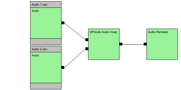 我正在努力将两个音频流混合到单个输出流中。MFNode有一个AudioMixerMFT,但是当我试图构建这样的拓扑时,TopoEdit会崩溃&执行它: