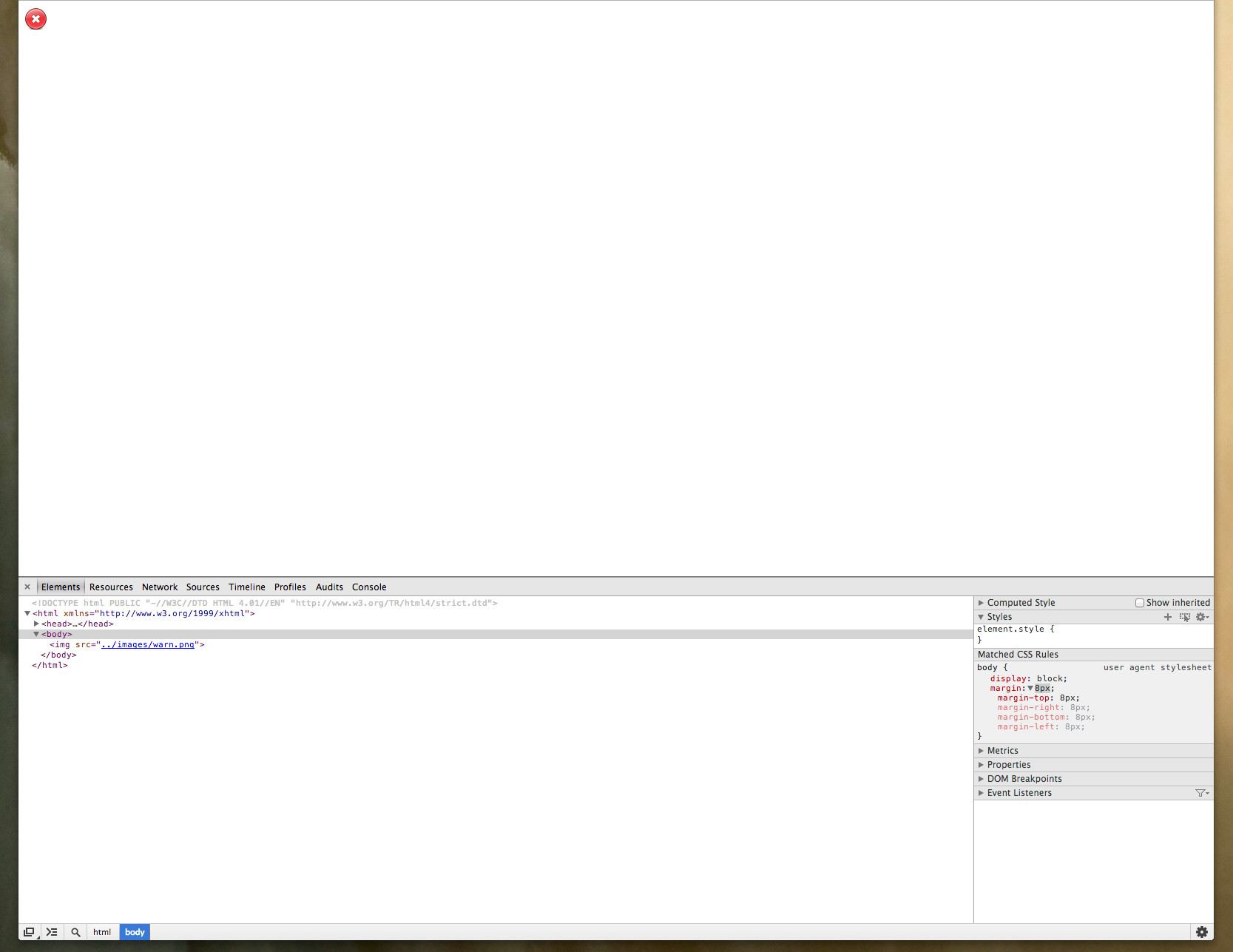 无论我如何尝试,我的形象的左边总是有空间。我把所有东西都剥光了,下面是一张照片。Chrome的css检查器表示,车身的左边距为8 px;(见下图)有什么方法可以使图像与左边边缘平齐吗?