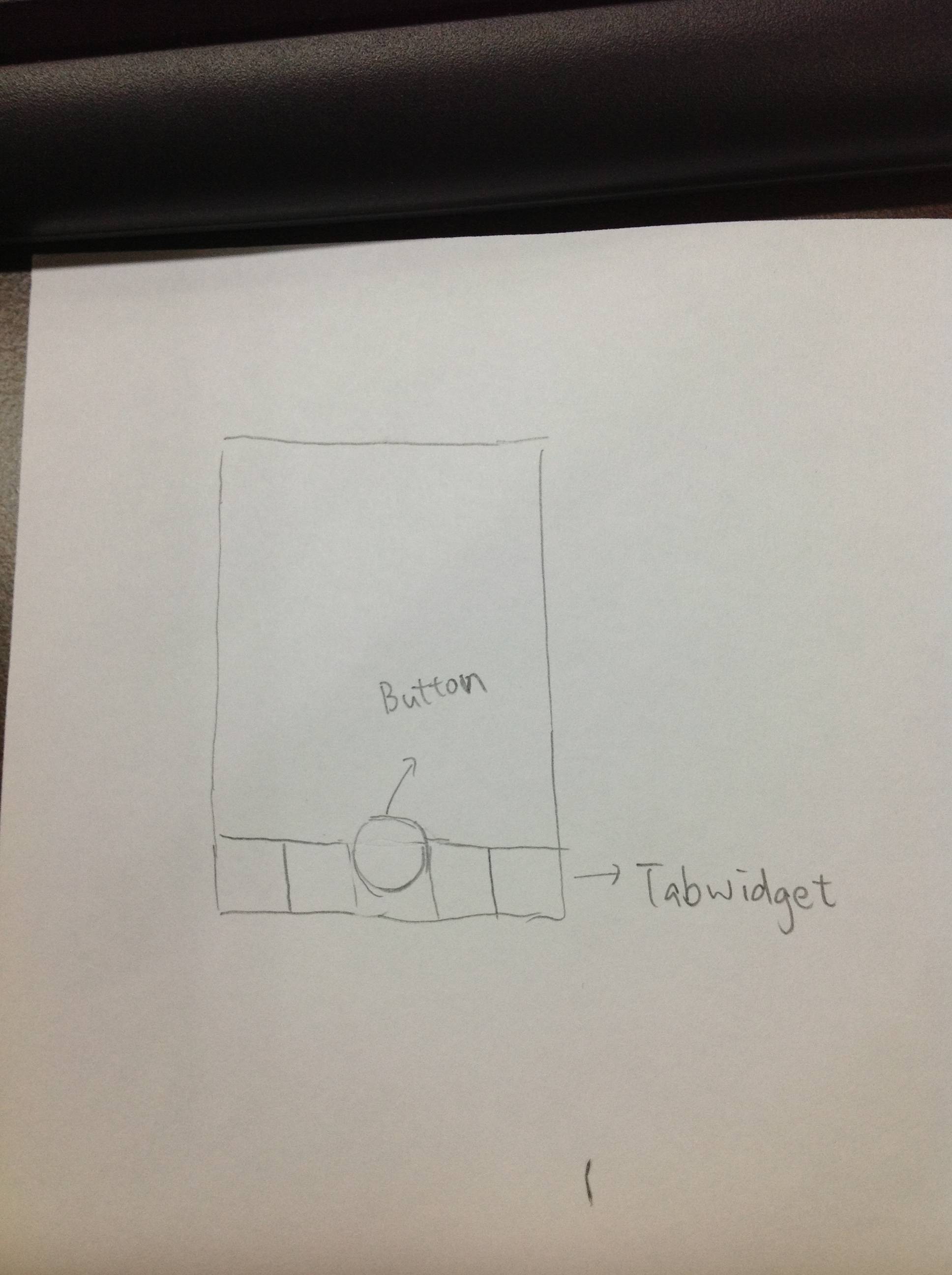 我想用FragmentTabHost实现这个布局,但我不知道应该使用哪些组件。我知道如何使用FragmentTabHost,但在本例中,TabWidget中有一个圆形按钮。我知道这个设计并不遵循android的设计原则,但我只想实现这个布局。是否有任何关于自定义视图或如何实现此布局的参考?谢谢~