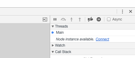 在Thread> Main下,您应该会看到"Node实例可用. Connect“。