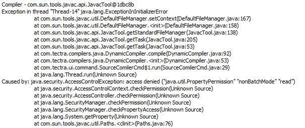 System.setProperty("java.home","C:\\DevEnv\\java");现在,ToolProvider.getSystemJavaCompiler();返回有效的编译器对象,但是在使用它编译java代码时,我得到了以下异常。它实际上是在调用编译器对象的getStandardFileManager方法时使用的。