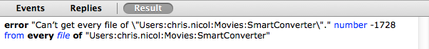 set this_folder to "Users:chris.nicol:Movies:SmartConverter:"