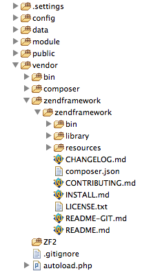 composer create-project --repository-url="http://packages.zendframework.com" zendframework/skeleton-application --stability dev将框架-应用程序重命名为我的项目名称之后。