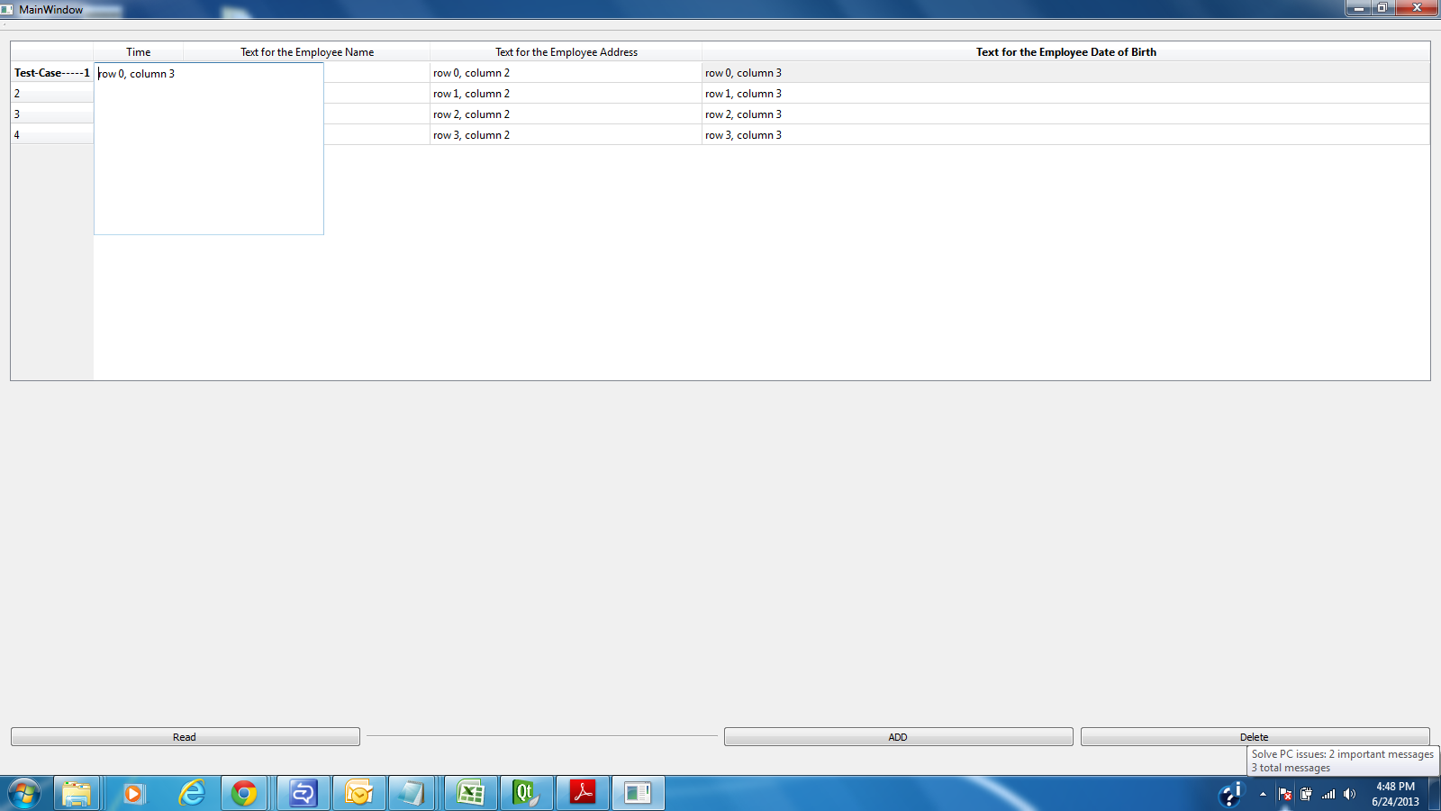 我正在QTableView的QStandardItemModel中工作。我在从一个QTextEdit派生的类中使用QItemDelegate类。它包括在每个列的单元格内编辑文本,请参阅所附图片。