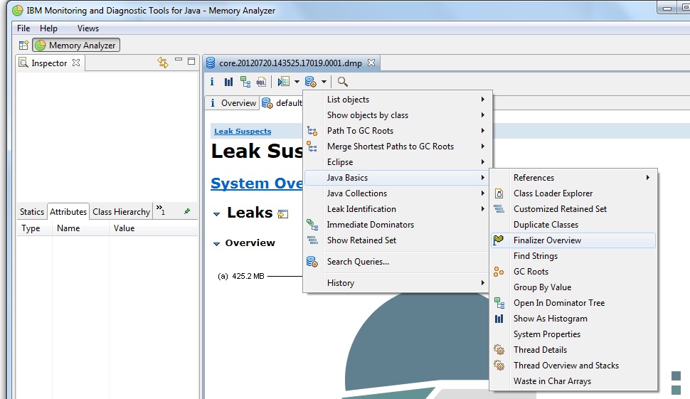 通过添加jvm参数生成堆转储/系统核心。然后http://www.oracle.com/technetwork/java/javase/memleaks-137499.html下载http://eclipse.org/mat/工具。在上面的工具中加载生成的转储,然后如下所示