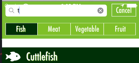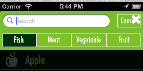 在iOS 6上,一切都运行得很好,当我按下搜索栏时,就会显示范围条,并在底部正确地滑动行,就像您在图像中看到的那样(忘记大X了)。