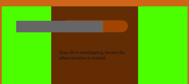 我已经定位像显示上图像(属性:顶部,左边,位置绝对),但如果我调整浏览器窗口的大小,灰色div将覆盖居中的div (将停留在同一地点)。检查以下图像以了解我的意思: