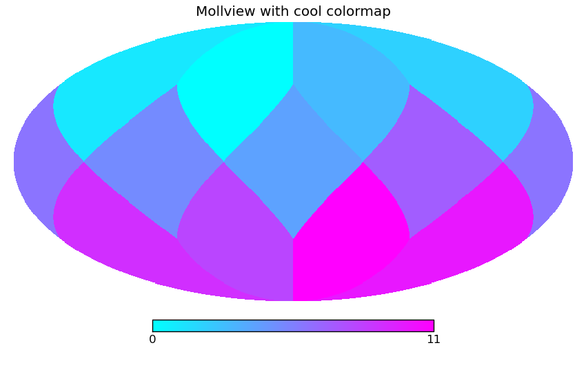 hp.mollview(np.arange(12), cmap=cool_cmap)见产出: