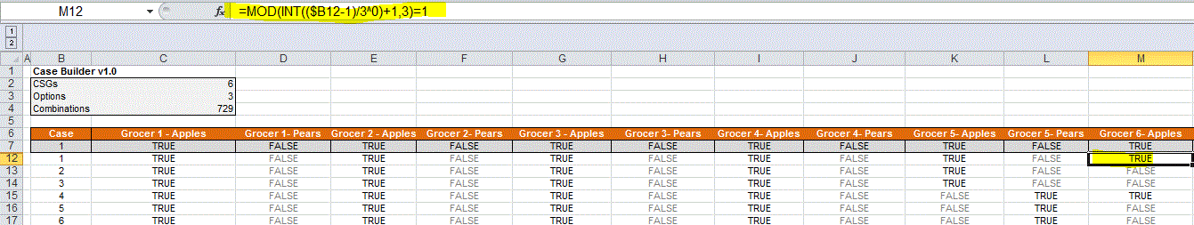 我确实解决了一个初始问题,在这个问题上,食品店的选择数量与MOD\INT方法相同。这是简单的单一公式,因为模式是可重复的。