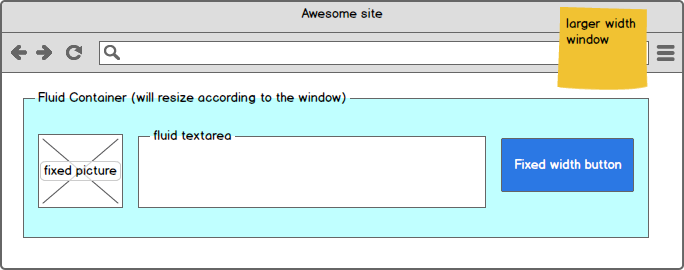 基本上,我有一个流体<div>容器,它有三个内部元素(一个固定宽度的<img>元素,一个流体宽度<textarea>,一个固定宽度的<button>)。