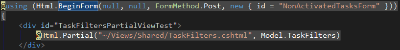第二,在您的equipmentID调用中使用BeginForm前面的@表示您可能需要研究一下Razor语法。菲尔·哈克的Razor语法快速参考是一个很好的起点。剃刀语法告诉解析器视图的哪些部分是静态的,应该按原样输出,哪些部分是C#代码,在发送到浏览器之前应该执行这些代码。如果您使用Visual作为您的IDE,那么它非常擅长突出显示您的代码的哪些部分被解释为C#代码,哪些部分被解释为普通的HTML。