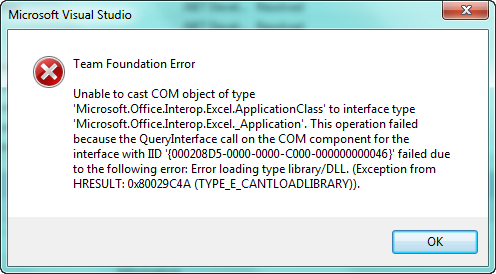 Visual 2010高级版、TFS 2010版和Office 2013版。这上星期起作用了,但已经停止工作了。我怀疑是某种Office更新导致了这种情况,但我无法找到如何修复它。