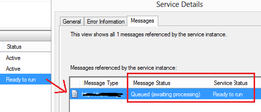 服务详细信息告诉我消息已排队等待处理: