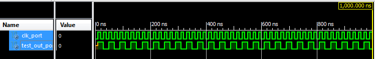 但我还是得到了错误的结果。test_out_port应随着时钟进程的变化而改变。