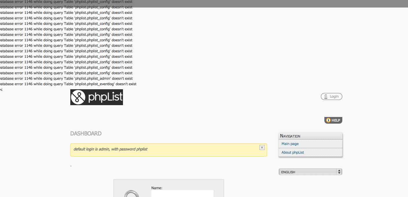 然后,当我打开主机/列表/管理时,这个错误就消失了。但我无法通过用户名"admin“和密码"phplist”登录到此。因此,我搜索了如何更改密码,并发现我们可以通过更改管理表中的密码字段来做到这一点。