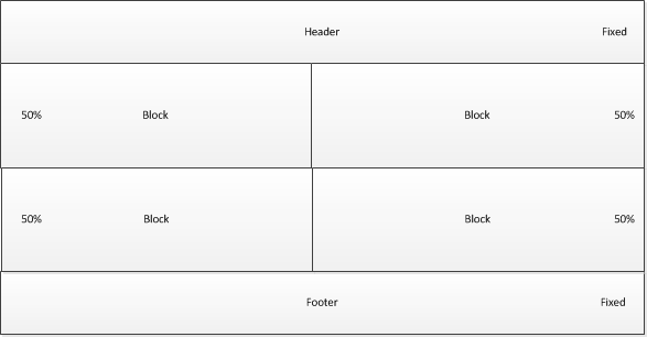 <div id="footer"> ... </div>我的问题是:我怎样才能使我的容器流动和头部和页脚是固定的?容器中的块设置在50%的高度和宽度上,因此只有容器必须是100%的高度(-固定的页眉和页脚)。