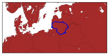 map.readshapefile('luthuania', 'any_name_you_like', drawbounds=True, linewidth=2, color='b')