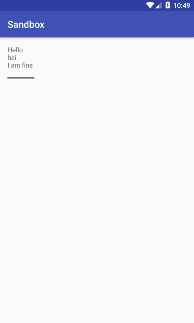 }这应该会给你这样的结果。它与您的TextView的宽度相匹配,因此,如果您希望该行占用全部宽度,则将TextView宽度属性更改为match_parent。
