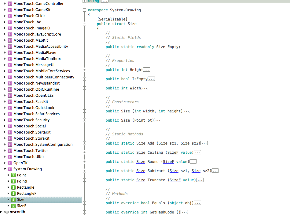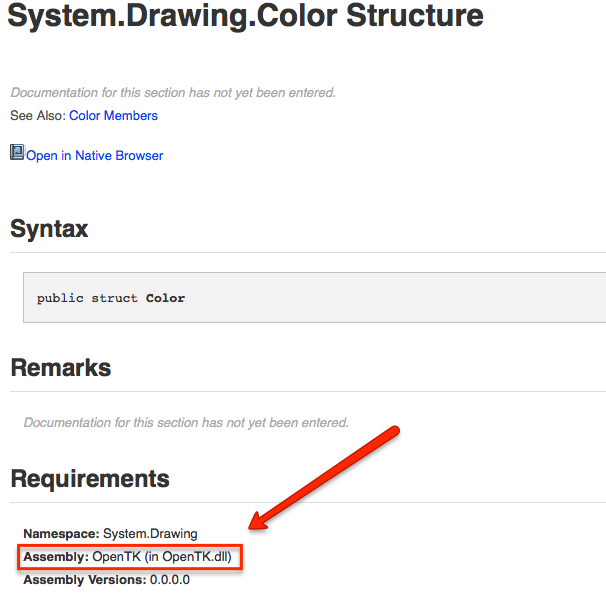 我昨天遇到了问题。我想在Android和iOS项目中使用System.Drawing.Color结构。Xamarin文档声称MonoTouch框架具有System.Drawing.Color结构(Link-http://iosapi.xamarin.com/?link=T:System.Drawing.Color)。但是在monotouch.dll名称空间中,System.Drawing没有使用名称颜色的结构。
