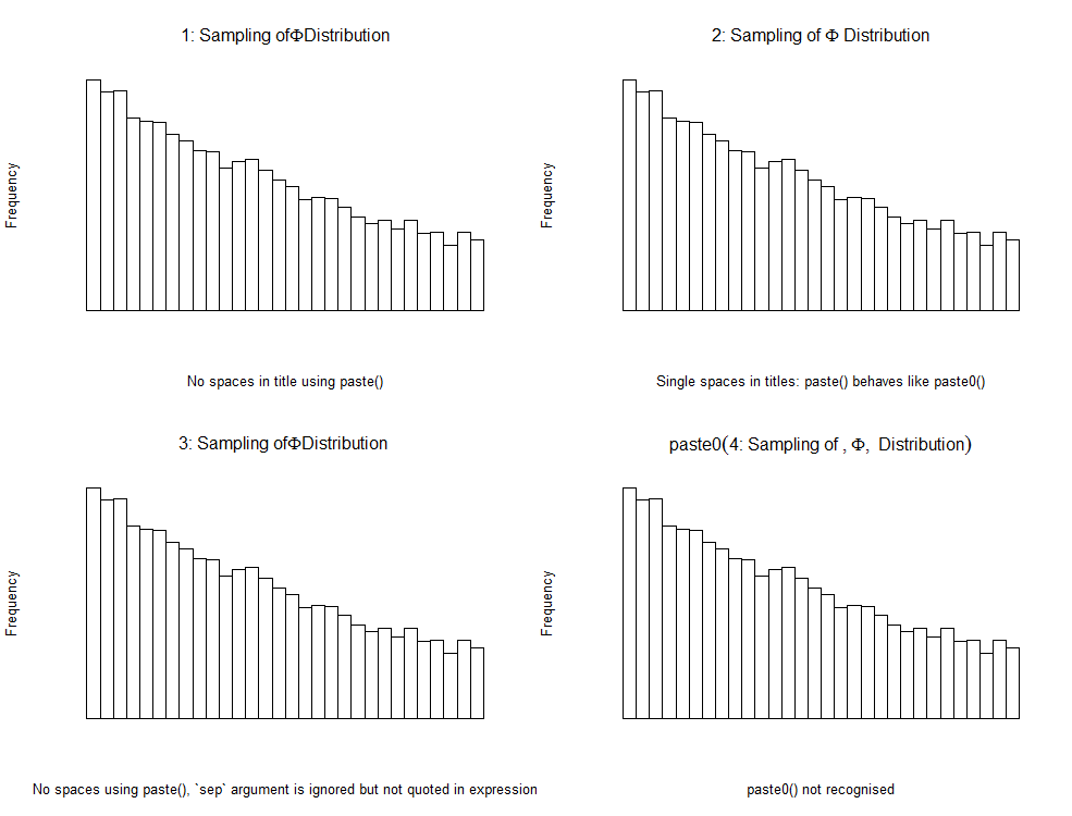 xlab = "Single spaces in titles: paste() behaves like paste0()" , axes = F )