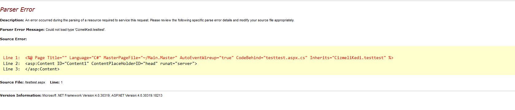 当我试图访问testest.aspx页面时,我得到了以下错误: