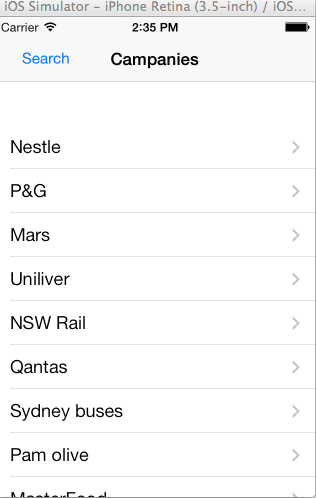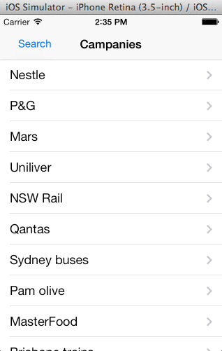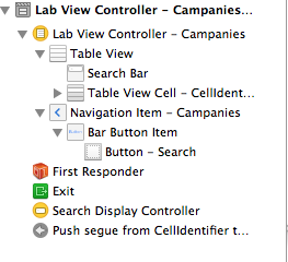 我想知道是否有任何方法实现这样的UI功能。正如我们所知道的,当我们在xcode 5中拖入搜索栏和searchDisplay控件时,我们会得到一组搜索控件,包括一个搜索栏和一个searchDisplayController。