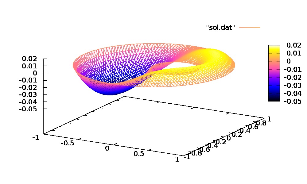 0.597634 -0.0376 3.06323e-33由于某些原因,我不知道在每个“包”中有一个数据点重复了两次。但这是他们在FreeFem手册中告诉你的。显然,GNUPLOT出于某种原因需要“数据包”之间的空格。