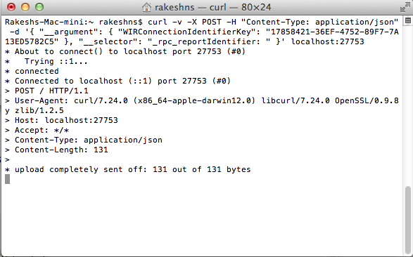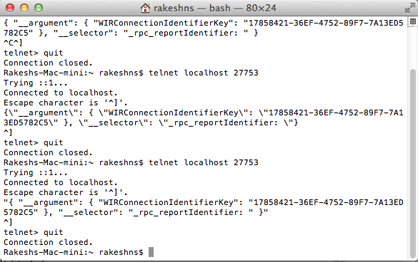 __selector: '_rpc_reportIdentifier:' }到本地主机:27753使用“telnet”或“curl”.