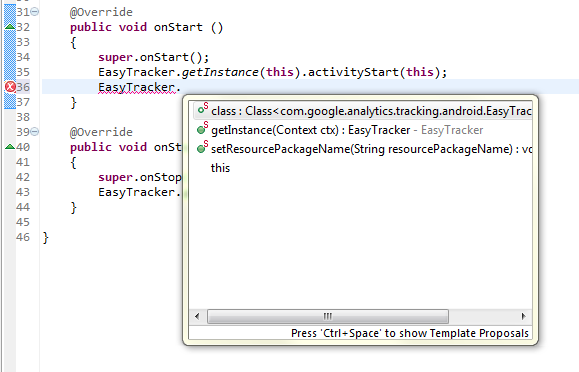 }但是,当我试图在getTracker()类中调用EasyTracker方法时,它并不存在。