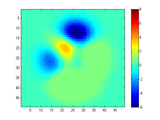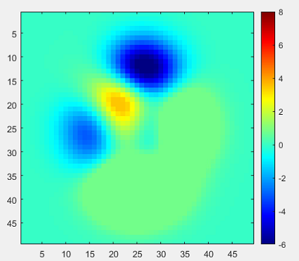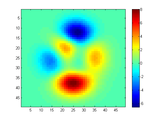例如,考虑Matlab中的“峰值”图像:imagesc(peak)